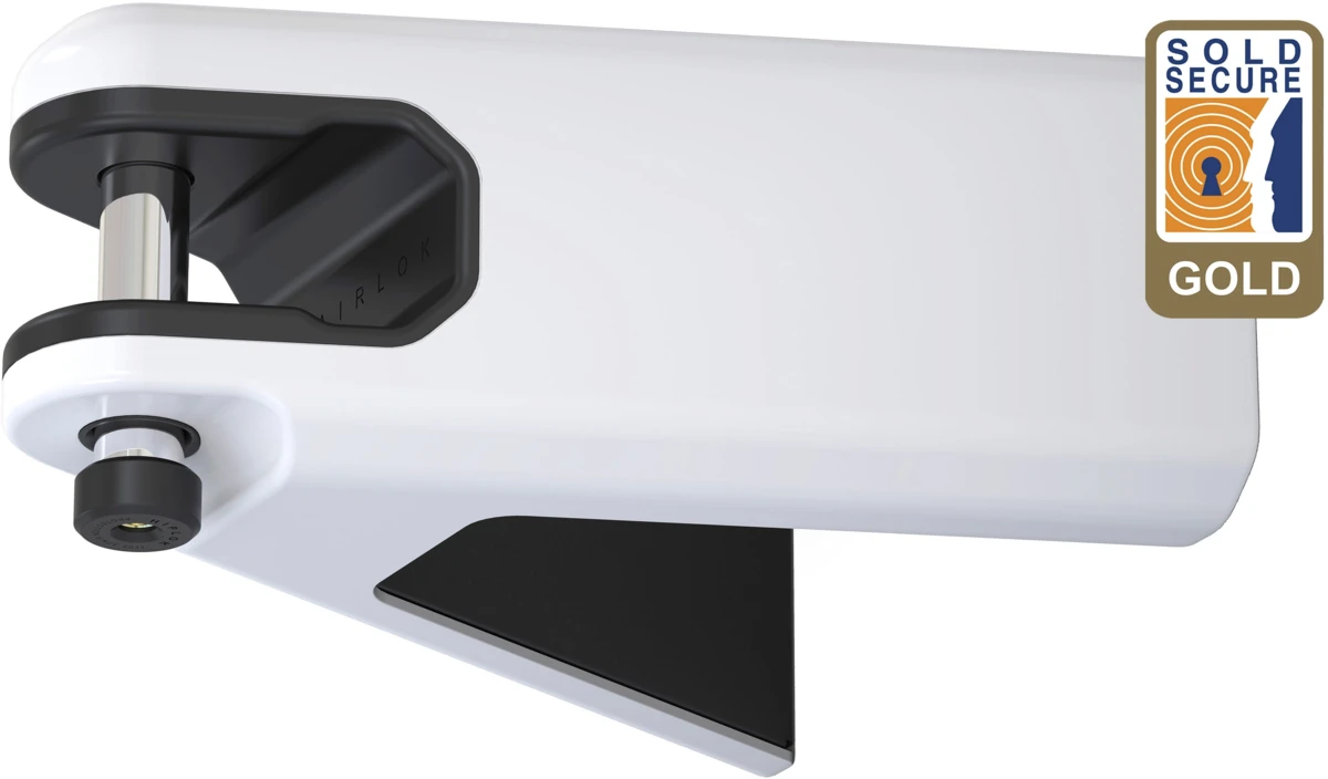 Maximum Gold Sold Secure rated, wall-mounted bicycle storage hanger. AIRLOK’s hardened-steel frame and integrated 30mm hardened-steel locking pin combine to keep your bike safe while the impact-resistant rubberized mouth prevents frame scratch. AIRLOK is suitable for indoor and outdoor use and can be used with a wide variety of bike frames, providing a practical, super-secure way to store your bike at home, in the garage, shed or even in the office.