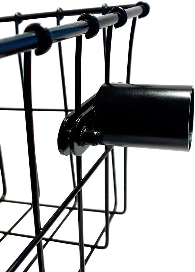 The PDW Outpost Mount allows you to attach a handlebar-mounted headlight to the side of your tapered wire basket—eliminating the problem of basket cargo blocking the light beam. The attachment plate compensates for the angle of a tapered wire basket, allowing the headlight to stay nice and level.